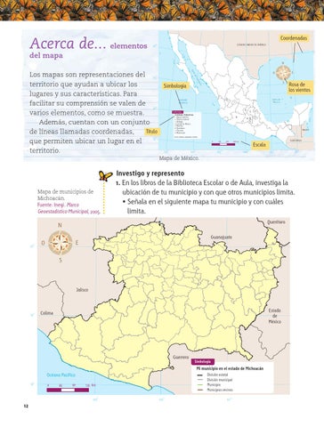 Los mapas son representaciones del 25° territorio que ayudan a ubicar los lugares y sus características. Para facilitar su comprensión se valen de 20° varios elementos, como se muestra. Además, cuentan con un conjunto Título de líneas llamadas coordenadas, 15° que permiten ubicar un lugar en el territorio.