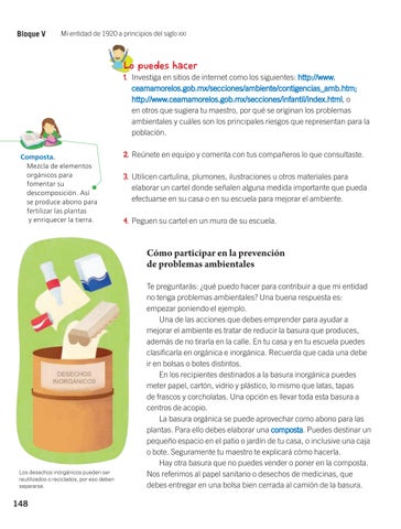 Lo puedes hacer 1. Investiga en sitios de internet como los siguientes: http://www. ceamamorelos.gob.mx/secciones/ambiente/contigencias_amb.htm; http://www.ceamamorelos.gob.mx/secciones/infantil/index.html, o en otros que sugiera tu maestro, por qué se originan los problemas ambientales y cuáles son los principales riesgos que representan para la población. Composta. Mezcla de elementos orgánicos para fomentar su descomposición. Así se produce abono para fertilizar las plantas y enriquecer la tierra.