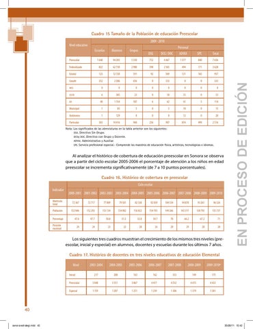 Cuadro 15 Tamaño de la Población de educación Preescolar 2009 - 2010