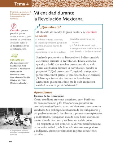 Tema 4 Describirás repercusiones de la Revolución Mexicana en la vida cotidiana de tu entidad.