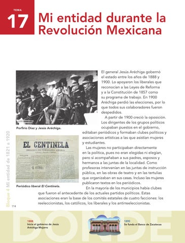 El general Jesús Aréchiga gobernó el estado entre los años de 1888 y 1900. Lo apoyaron los liberales que reconocían a las Leyes de Reforma y a la Constitución de 1857 como su programa de trabajo. En 1900 Aréchiga perdió las elecciones, por lo que todos sus colaboradores fueron despedidos. A partir de 1900 creció la oposición. Los dirigentes de los grupos políticos ocupaban puestos en el gobierno, Porfirio Díaz y Jesús Aréchiga. editaban periódicos y formaban clubes políticos y asociaciones artísticas a las que asistían mujeres y estudiantes. Las mujeres no participaban directamente en la política, pues no eran elegidas ni elegían, pero sí acompañaban a sus padres, esposos y hermanos a las juntas de la localidad. Como profesoras intervenían en las juntas de instrucción pública, en las obras de teatro y en las tertulias que organizaban en sus casas. Incluso las mujeres publicaron textos en los periódicos. Periódico liberal El Centinela. En la mayoría de los municipios había clubes que fueron el antecedente de los actuales partidos políticos. Estas asociaciones eran la base de los comités estatales de cuatro facciones: los reeleccionistas, los católicos, los liberales y los antirreeleccionistas.
