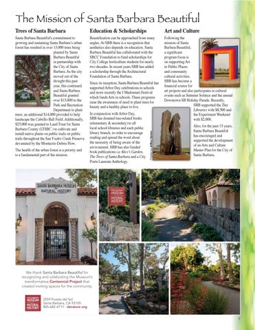 We thank Santa Barbara Beautiful for recognizing and celebrating the Museum’s transformative Centennial Project that created inviting spaces for the community. 2559 Puesta del Sol Santa Barbara, CA 93105 805-682 -4711 · sbnature .org 7