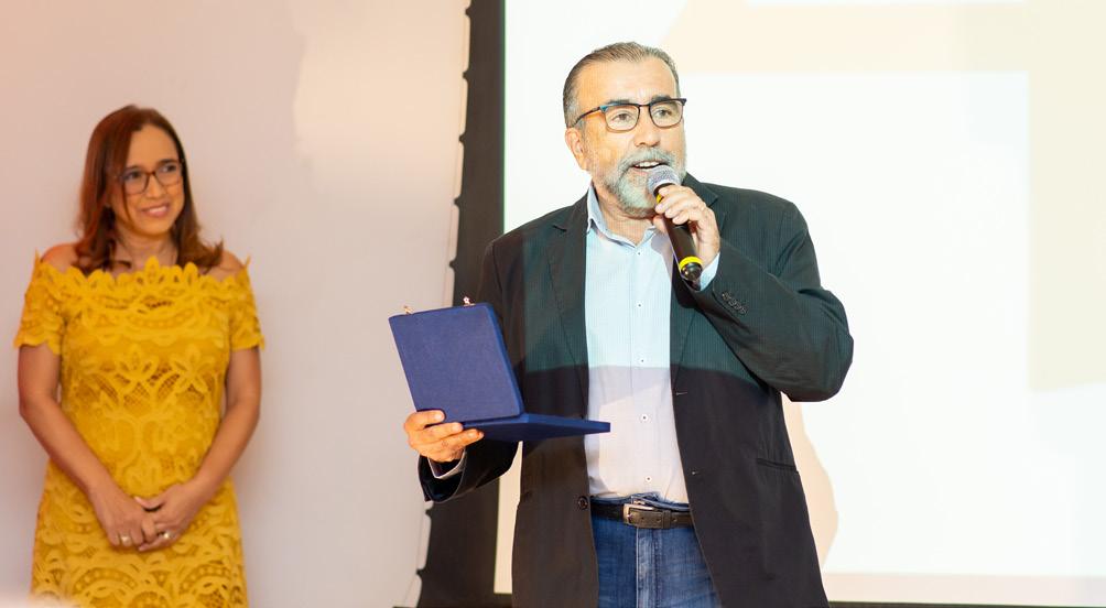 No XLIII Congresso Norte-Nordeste de Cardiologia e XIII Congresso Amazonense de Cardiologia, a Dra. Roberta Nolasco, presidente da SBC Alagoas, representou o Dr. Pedro Ferreira de Albuquerque, um dos fundadores da SBC Alagoas, ex-presidente da nossa estadual e atual delegado associado. Em nome do Dr. Pedro, recebeu a Comenda Enio Lustosa Cantarelli, uma homenagem das Sociedades Norte-Nordeste e Amazonense de Cardiologia, reconhecendo suas notáveis contribuições à cardiologia e à medicina brasileira. O prêmio foi entregue pelo Dr. Gentil Barreira de Aguiar Filho, presidente da Sociedade NorteNordeste de Cardiologia, destacando mais um marco importante para a SBC Alagoas.