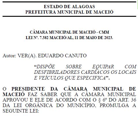 Durante o encerramento do II Simpósio Arritmia em Foco, a SBC Alagoas celebrou a aprovação da Lei Municipal 7382, uma conquista em parceria com o vereador Eduardo Canuto, aprovada por unanimidade na Câmara Municipal de Maceió. A lei estabelece a obrigatoriedade de disponibilizar Desfibriladores Externos Automáticos (DEAs) em locais de grande aglomeração. Graças ao apoio de verba pública, a SBC Alagoas conseguiu adquirir e doar DEAs para instituições estratégicas de Maceió, como a Base da OPLIT (Operação Policial Litorânea Integrada), o Batalhão de Salvamento Aquático, a Associação Estadual dos Triatletas de Alagoas (AETRI-AL) e o Estádio Rei Pelé, assegurando o acesso a esses equipamentos essenciais em áreas com grande fluxo de pessoas.