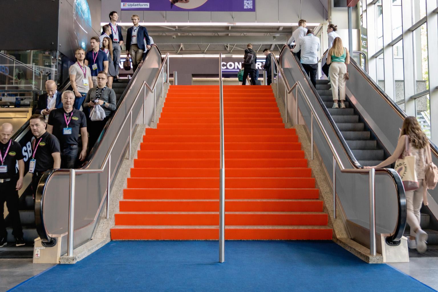 Makeyourbrandingimpossibletomissbyusingthestairwaysleadingtothehalls. Whethervisitorsaretakingthestairsortheescalator,yourmessagewillbeseenby everyone.