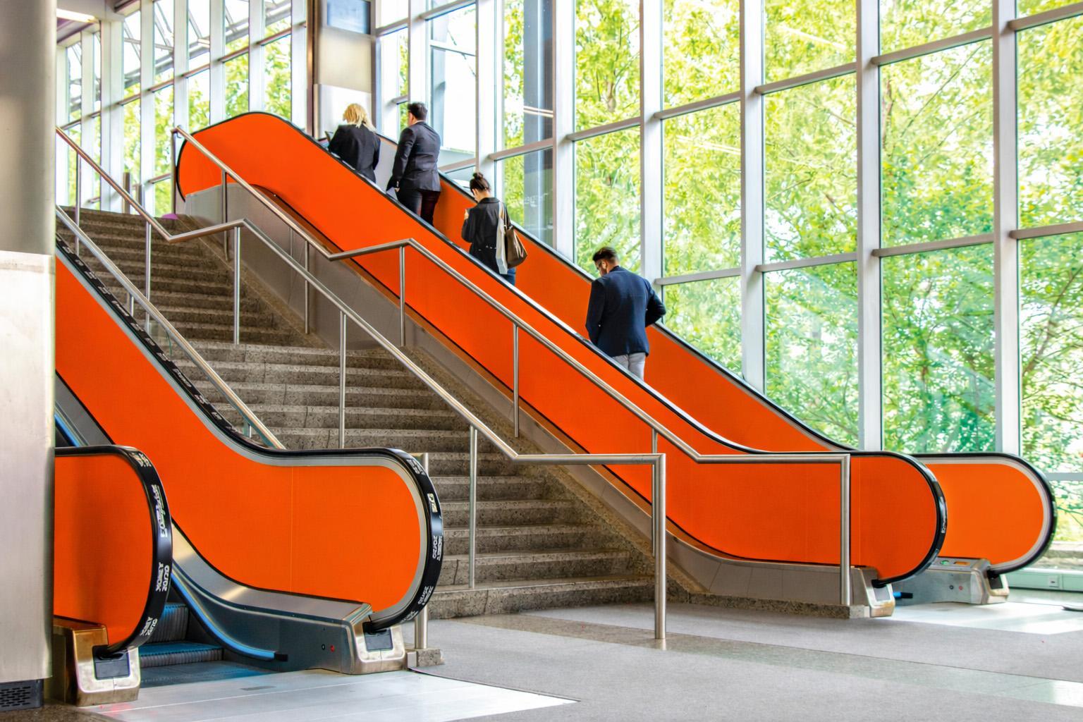 Takeyourmessagetonewheightsbydisplayingitontheescalatorhandrails. Whetheryou'resharingeventinformationorshowcasingyourbrand,this eye-catchingplacementensuresvisibilityallthewaytothetop.