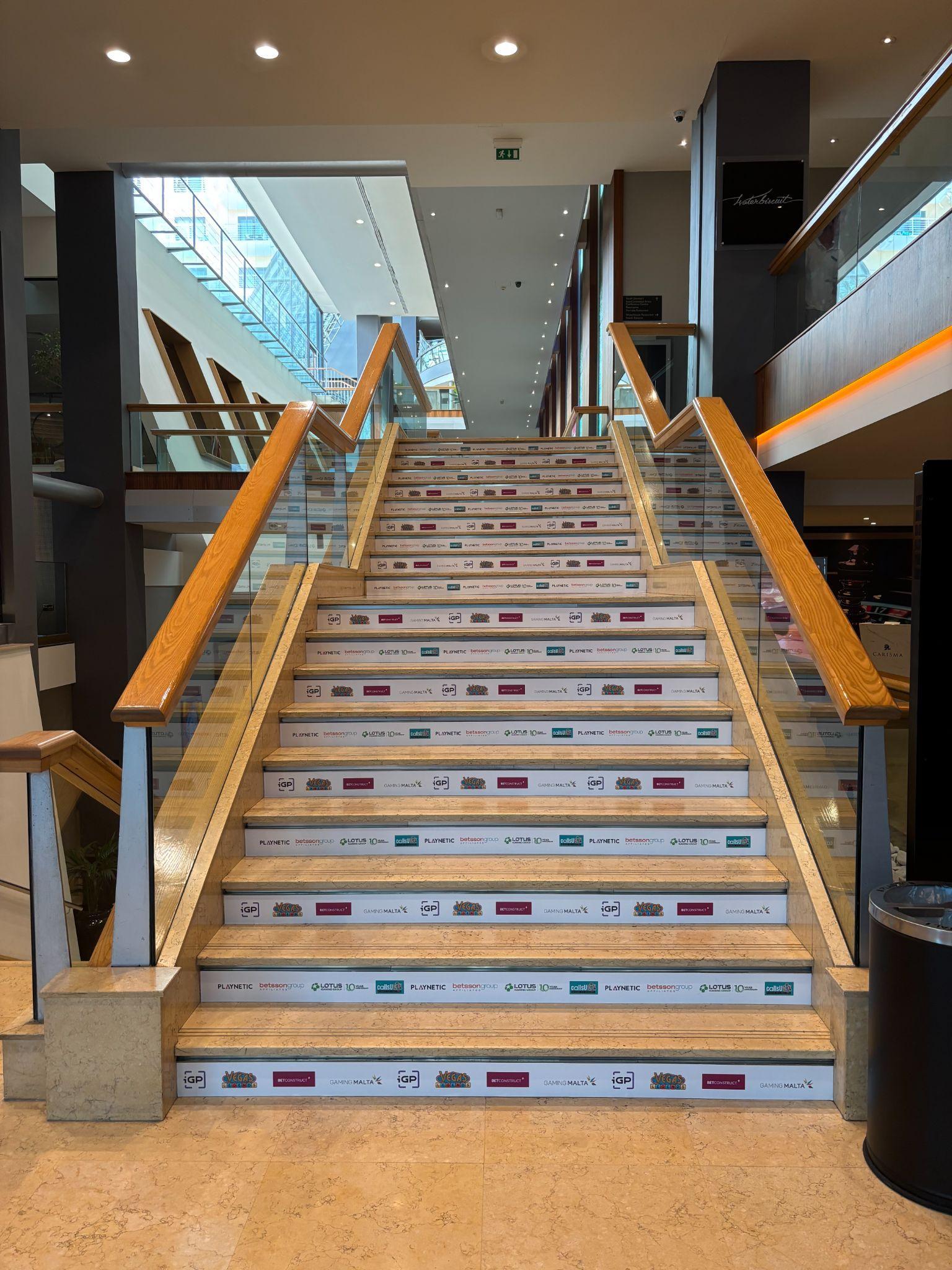 Thefrontofthestepsisbrandedwithvinyl,whiletheactualstepsremainfree, ensuringbothvisibilityandsafety.Amemorablebrandingexperiencethatwillstay withvisitorsastheymaketheirwaytotheirdestination.