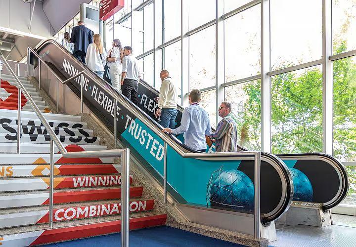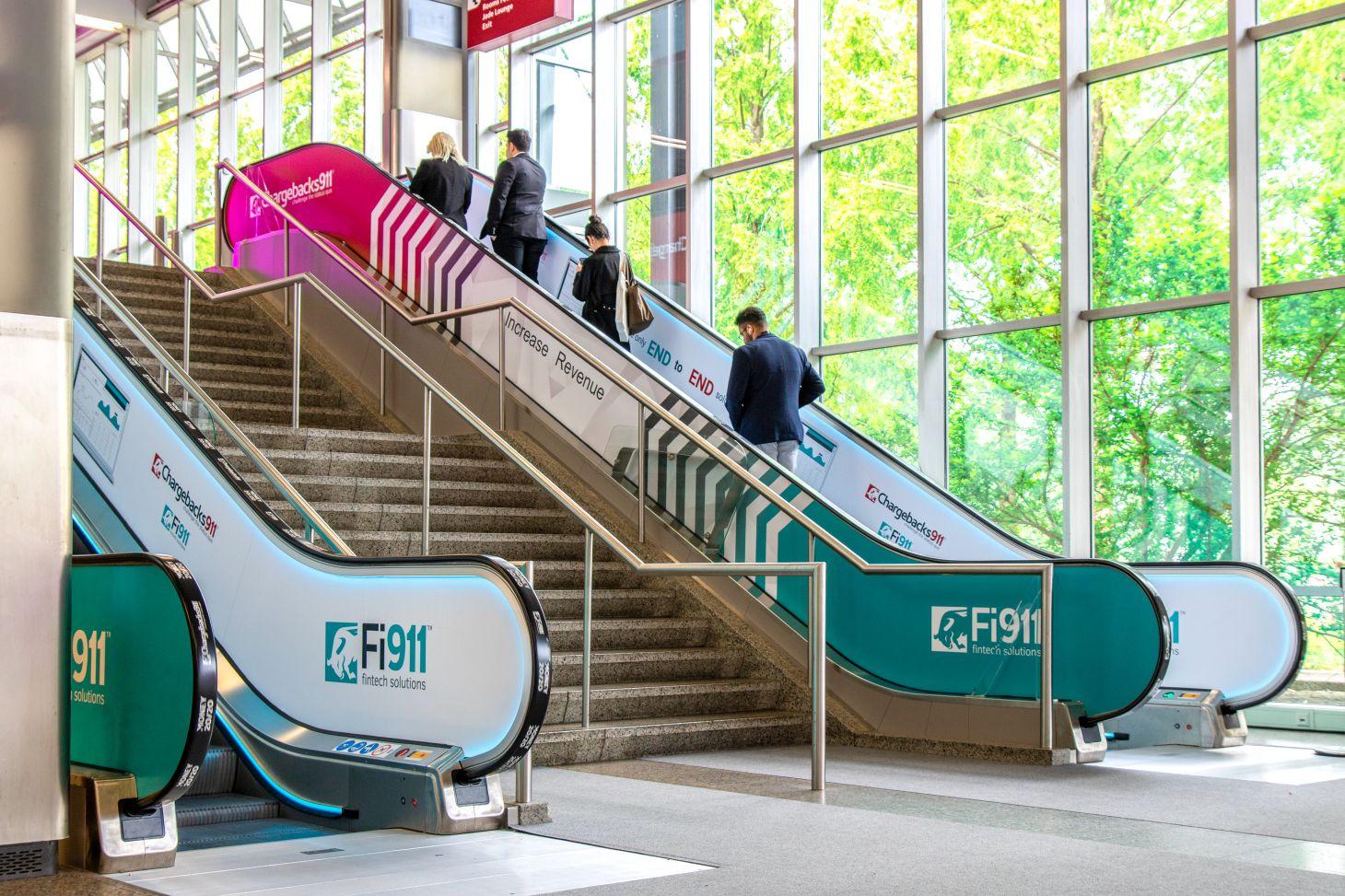 Brandingalongthesidesoftheescalatorareperfectforplacingyourmessage. Aseveryvisitorusestheescalatorsatsomepointduringtheevent,thisisa guaranteedwaytoensuremaximumbrandexposure.