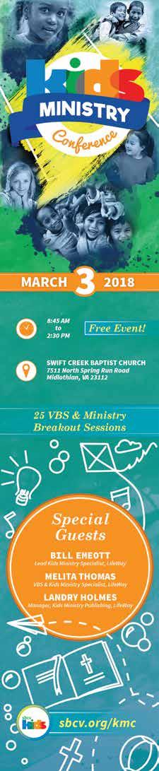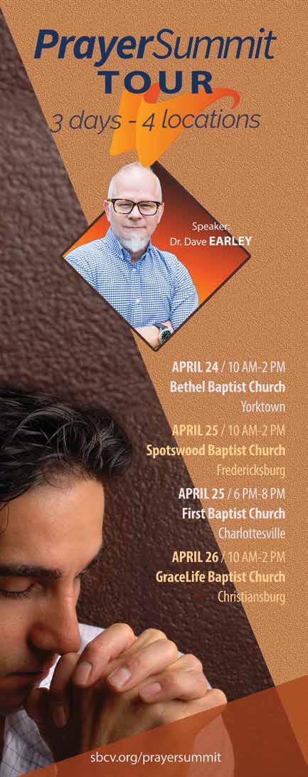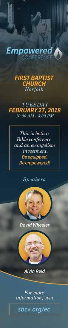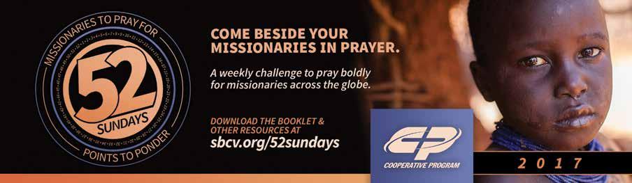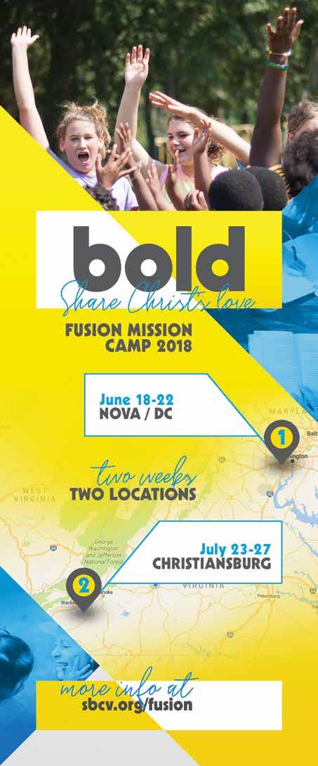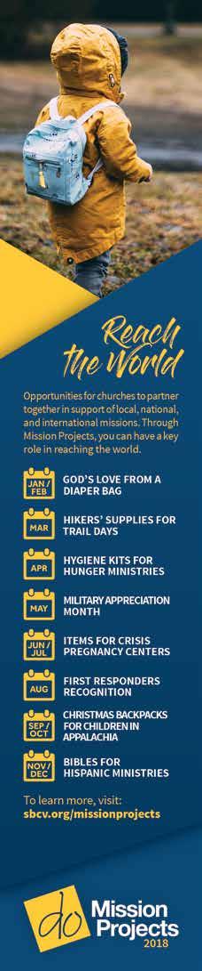 The Proclaimer tells about the amazing things God is doing through His Church in Virginia and around the world. It is provided free of charge due to your generous contributions made through the Cooperative Program. To subscribe, go online: sbcv.org/proclaimer.