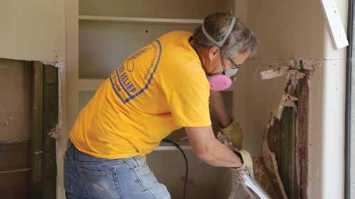 “This flood has impacted everybody. The waters were no respecter of person,” says Joe Veres. He serves as the ministry pastor at Forest Baptist Church in Forest. This was his first trip to volunteer with Disaster Relief teams. His duty was to remove wet drywall and flooring.