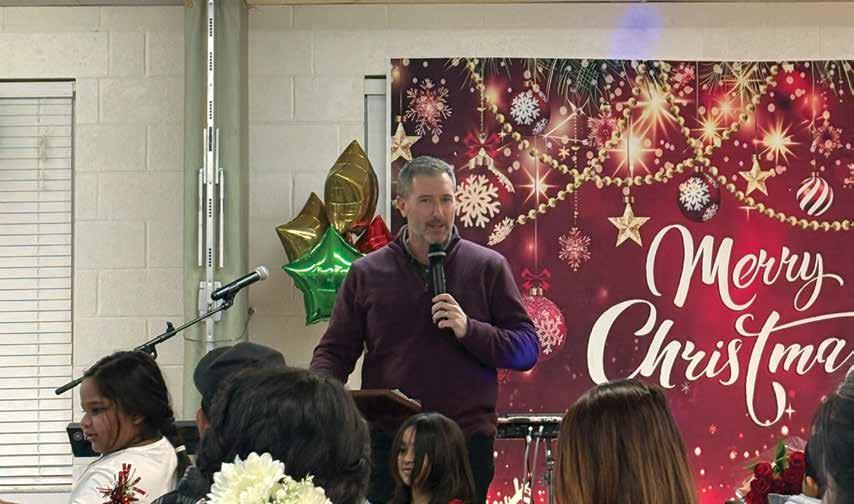 left, Pastor William Samadder shares the Christmas message; below, Teaching Pastor Colby Garman at Pillar Church, Dumfries, speaks.