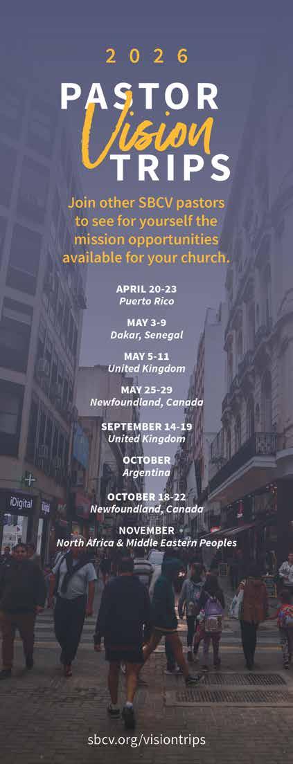 If your church would like to partner with missionaries passing through the International Learning Center in 2026—for evangelism or to encourage them through prayer and support— contact Brad Russell at missions@sbcv.org.