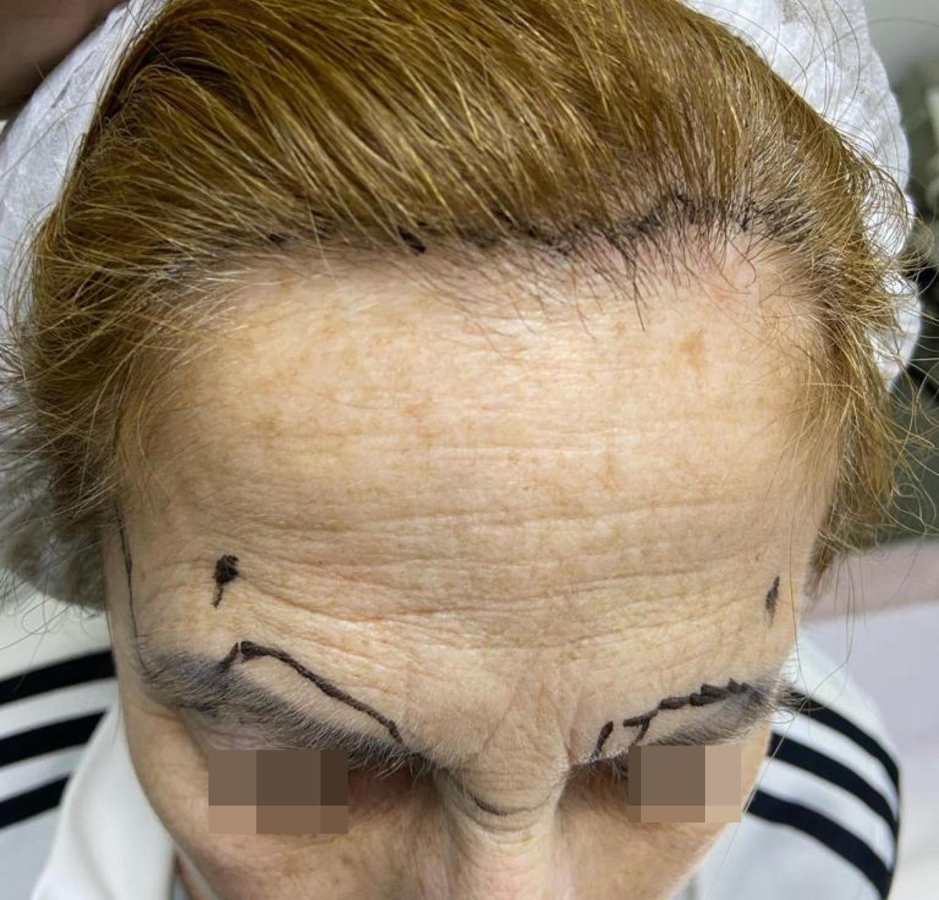 Paciente do sexo masculino, 69 anos, apresenta quadro de desconforto, ardência e prurido superficial na bolsa escrotal e região inguinal direita, com evolução há aproximadamente 6 anos. Negava história de herpes genital ou outras afecções na região. Após investigação extensiva conduzida por médico urologista, não foi identificada etiologia específica. O paciente não apresentou melhora com o uso de medicações orais para dor crônica, incluindo anticonvulsivantes, prescritas por médico clínico. Ao exame físico, não foram observadas lesões cutâneas na região acometida, tampouco outras alterações, exceto pela presença de dois acrocórdons. Diante da refratariedade ao medicamento medicamentoso convencional, optou-se pela realização de tratamento com toxina botulínica (Dysport®), na dose total de 90 unidades (U). A aplicação foi realizada por via intradérmica, na proporção de 2 U por ponto, distribuídas em 45 pontos, com espaçamento de 0,5 cm entre eles, cobrindo toda a área sintomática, previamente demarcada com o auxílio do paciente, que indicou as regiões de maior desconforto, abrangendo a bolsa escrotal e a parte da região inguinal direita (Figura 1). Duas semanas após o procedimento, paciente relatou melhora significativa dos sintomas e expressou satisfação com a abordagem terapêutica, passando a não necessitar mais do uso de medicações orais para o alívio da dor. Além disso, não foram observados efeitos adversos relacionados à aplicação da toxina. O paciente manteve controle satisfatório dos sintomas por um período de 10 meses, utilizando exclusivamente essa intervenção, sem necessidade de terapias complementares durante o seguimento.