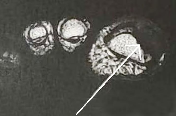 Figure 1: Canaliform dystrophy and subungual lesion located at the lunula