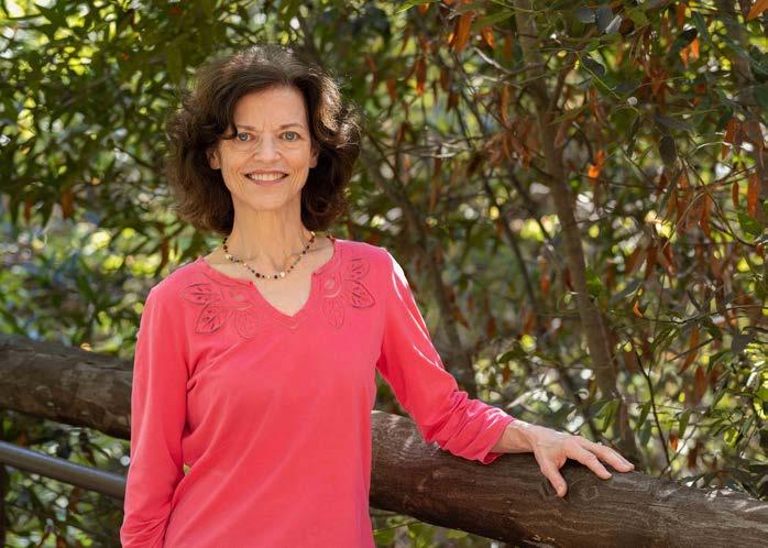 Rikke Reese Næsborg, Ph.D., has scaled a coast redwood (Sequoia sempervirens) in Big Basin Redwoods State Park and is now secured by ropes in the crown of the swaying, nearly 300-foottall (91-meters-tall) tree. After peering through a magnifying hand lens to examine tiny, complex organisms encrusting the tree’s bark, she makes a few notes before securing a small sample and carefully repelling back to the forest floor.