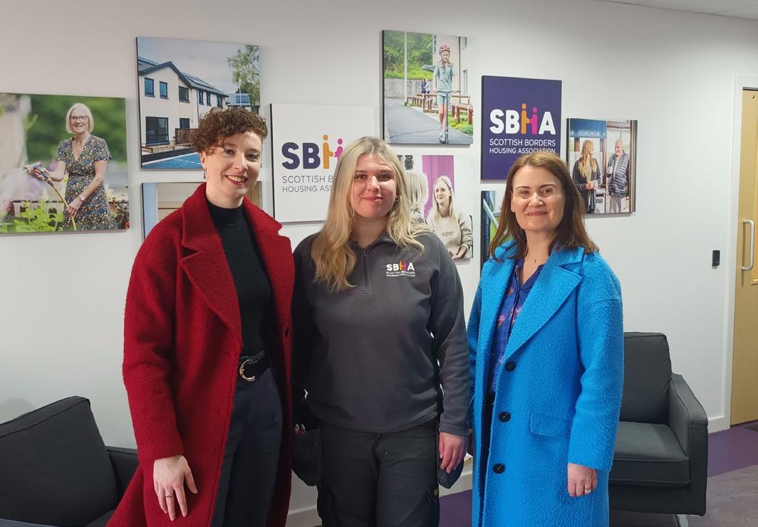 Bonnie (centre) with ITV journalist Isla Todd (left) and SBHA Director of Property Services