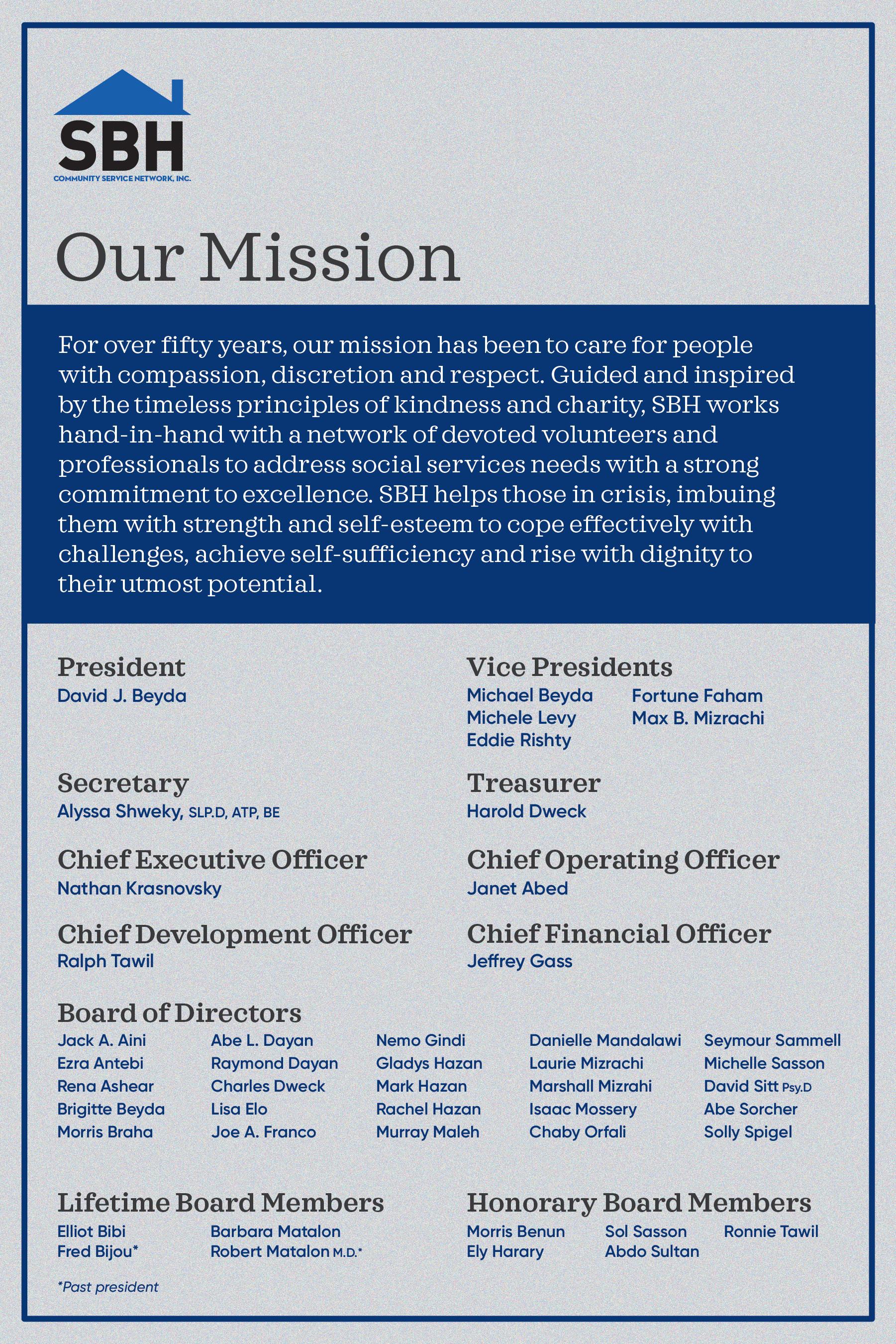 For over half a century, Sephardic Bikur Holim, has been providing essential services to our community. Over these years, our organization has been dedicated to serving our community with the utmost care and compassion. We are proud to be made up of both volunteers and highly-trained, qualified staff who work tirelessly to support our mission. Our mission is simple yet profound: to treat every individual as if they are a family member. Your participation and support in this event not only honor Michael Hudgens and Jason Goldberg but also help us continue our legacy of service. We look forward to greeting you at this special event and are grateful for your continued support.