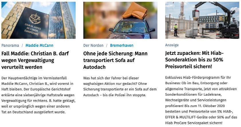 rechte Seitenleiste auf Startseite, Themenseiten & Newsline 400,– € 6 Stück