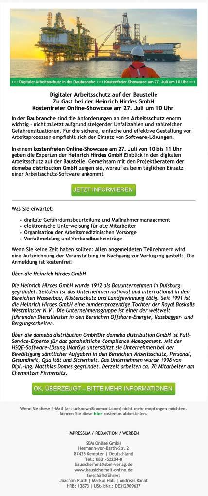Dispatch to the entire bausicherheit-online.de Newsletterdatabase (DSGVO-compliant).