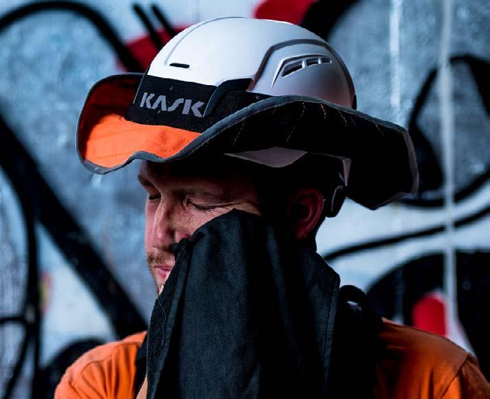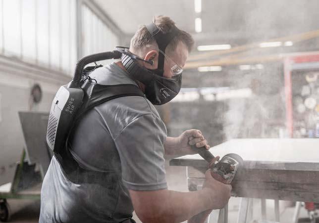 Gebläse-Atemschutz der dich beim Atmen unterstützt und Sommerhitze entgegen wirkt.