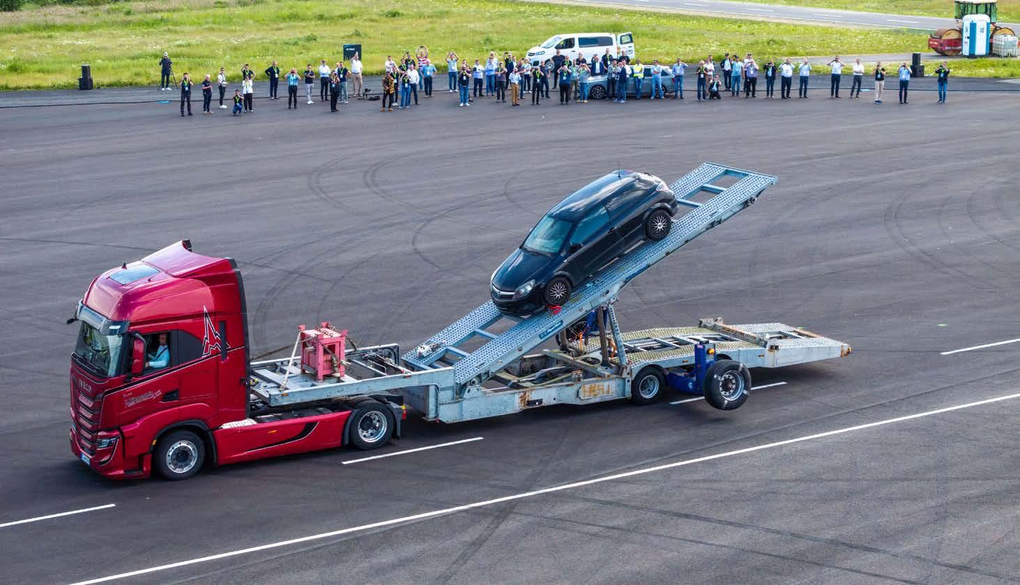 [ SPANSET ] Als Ende der 70er-Jahre der Verein Deutscher Ingenieure (VDI) die erste Richtlinie zur Transportsicherung von Fahrzeugen veröffentlichte, lagen SUVs, Hybridund Elektrofahrzeuge noch in weiter Ferne. Mittlerweile variieren das Gewicht und die Reifengröße der Fahrzeuge erheblich, was neue, variablere Ladungssicherungshilfsmittel erforderlich macht. Auch eine Überarbeitung der entsprechenden Richtlinie VDI 2700 Blatt 8 war in diesem Zusammenhang längst überfällig. Im Rahmen des Symposiums »Transportsicherung von Pkw und Lkw« hat der Ladungssicherungsspezialist SpanSet die überarbeitete Richtlinie genauer beleuchtet und in beeindruckenden Fahrversuchen die Ladungssicherungssysteme »CarFix« und »TruckFix« in den Fokus gerückt. Ort des Geschehens war das Testing Center in Aldenhoven.