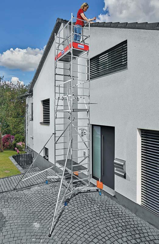 Stabil, stark und kompakt: Das Fahrgerüst, auf das Sie gewartet haben. Das MiTOWERFahrgerüst ist schnell und sicher von nur einer Person aufzubauen. Dank der ausgeklügelten Aufbaumethode steht man innerhalb von 10 Minuten auf Arbeitshöhen von bis zu acht Metern. Ohne Hilfe eines Kollegen, wie dies beim Auf- und Abbau eines herkömmlichen Gerüsts notwendig und sogar verpflichtend ist.
