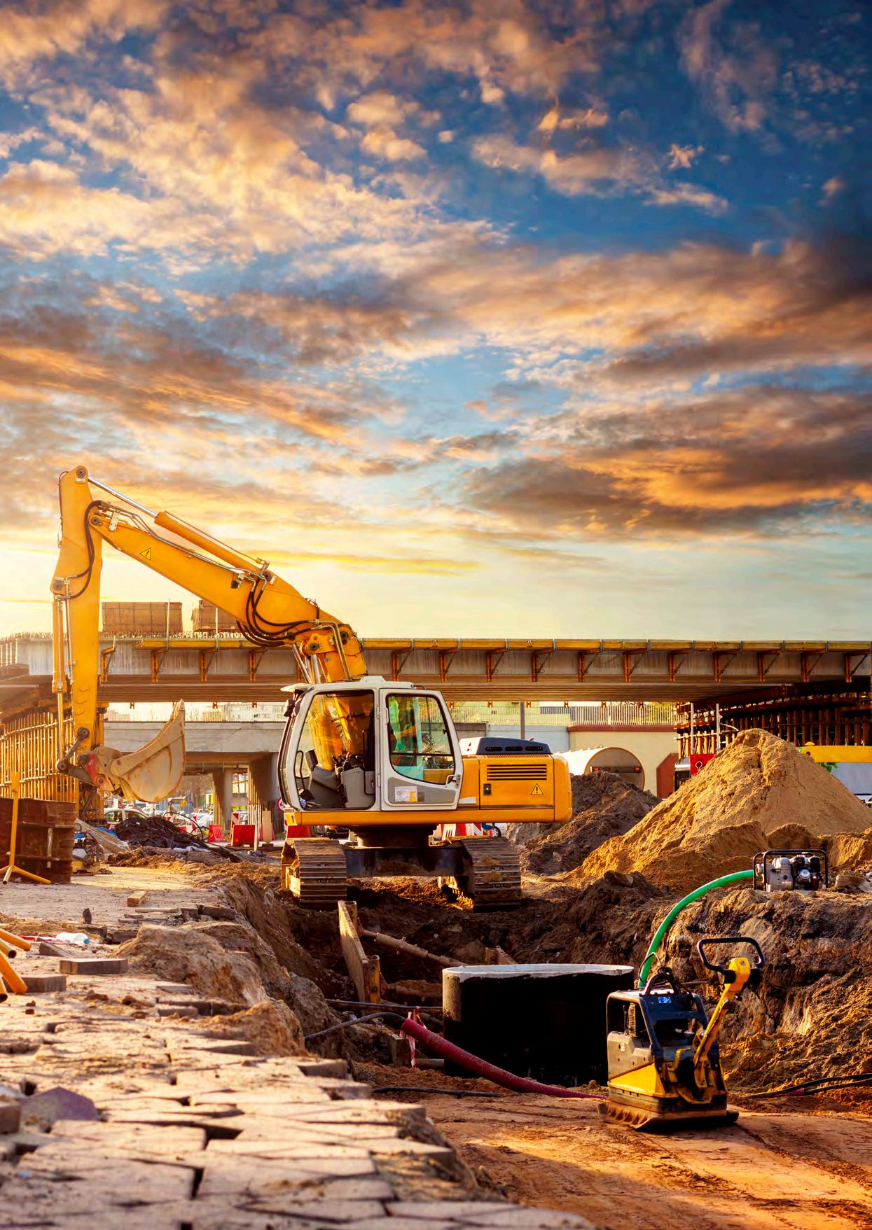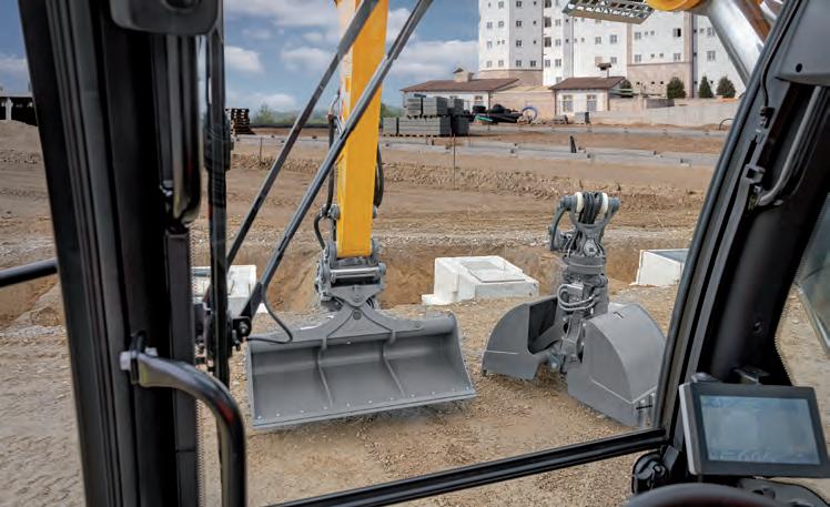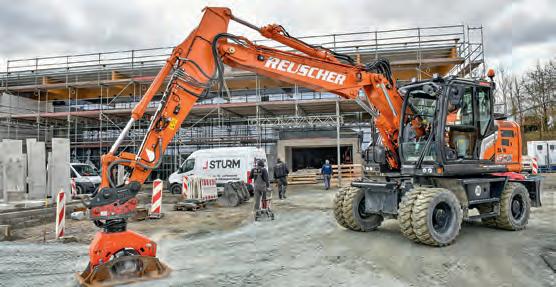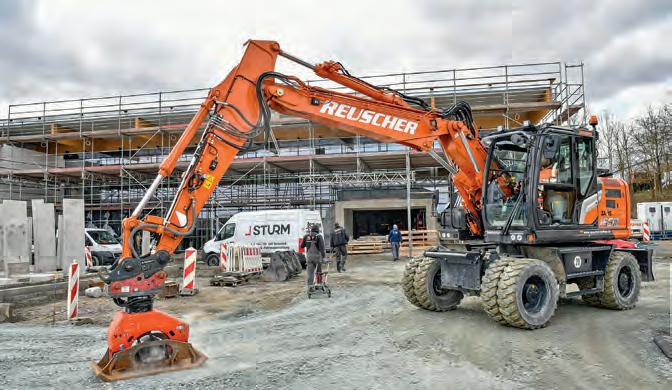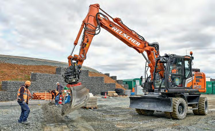28 | Kiesel | Wenn bei Gewerbebauprojekten die Raupenbagger ihre schweren Arbeiten abgeschlossen haben, schlägt die Stunde von vielseitig einsetzbaren Mobilbaggern wie dem ZX155W-7 von Hitachi.