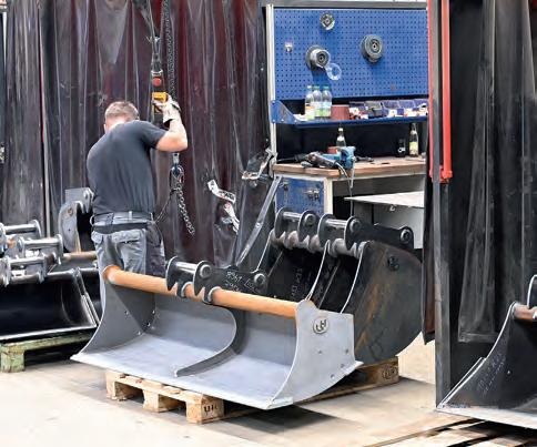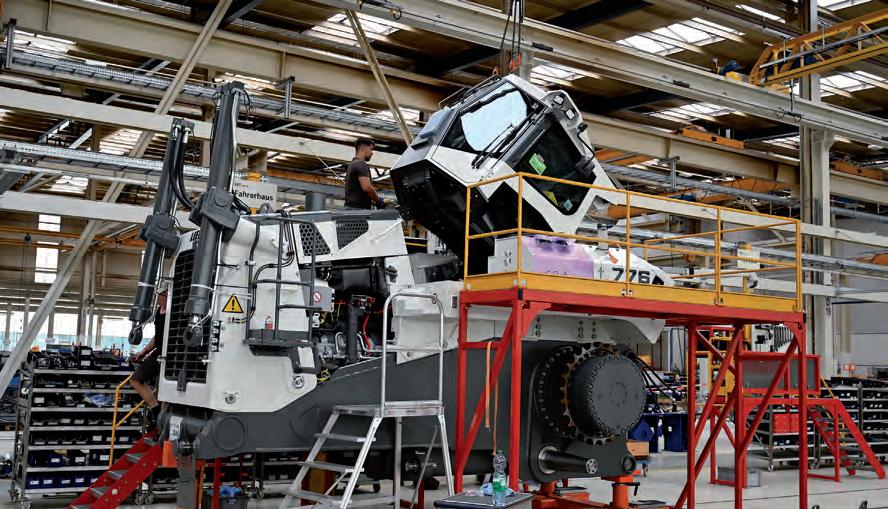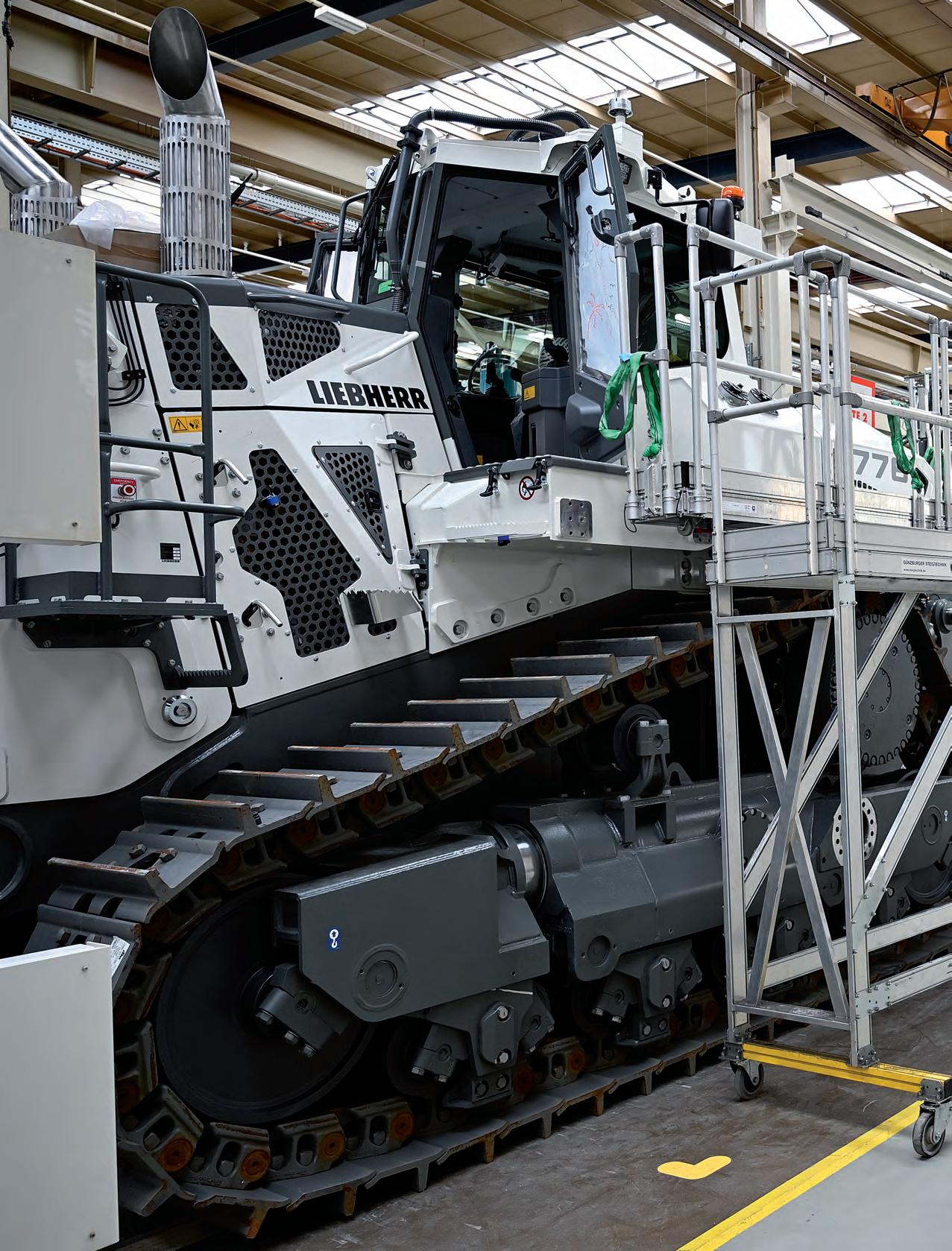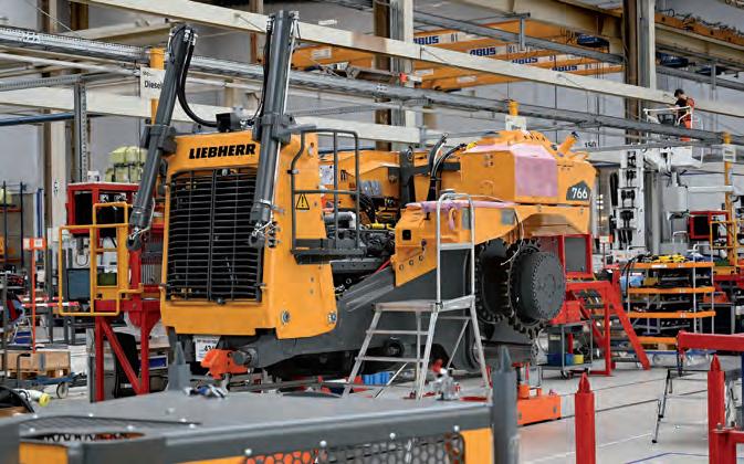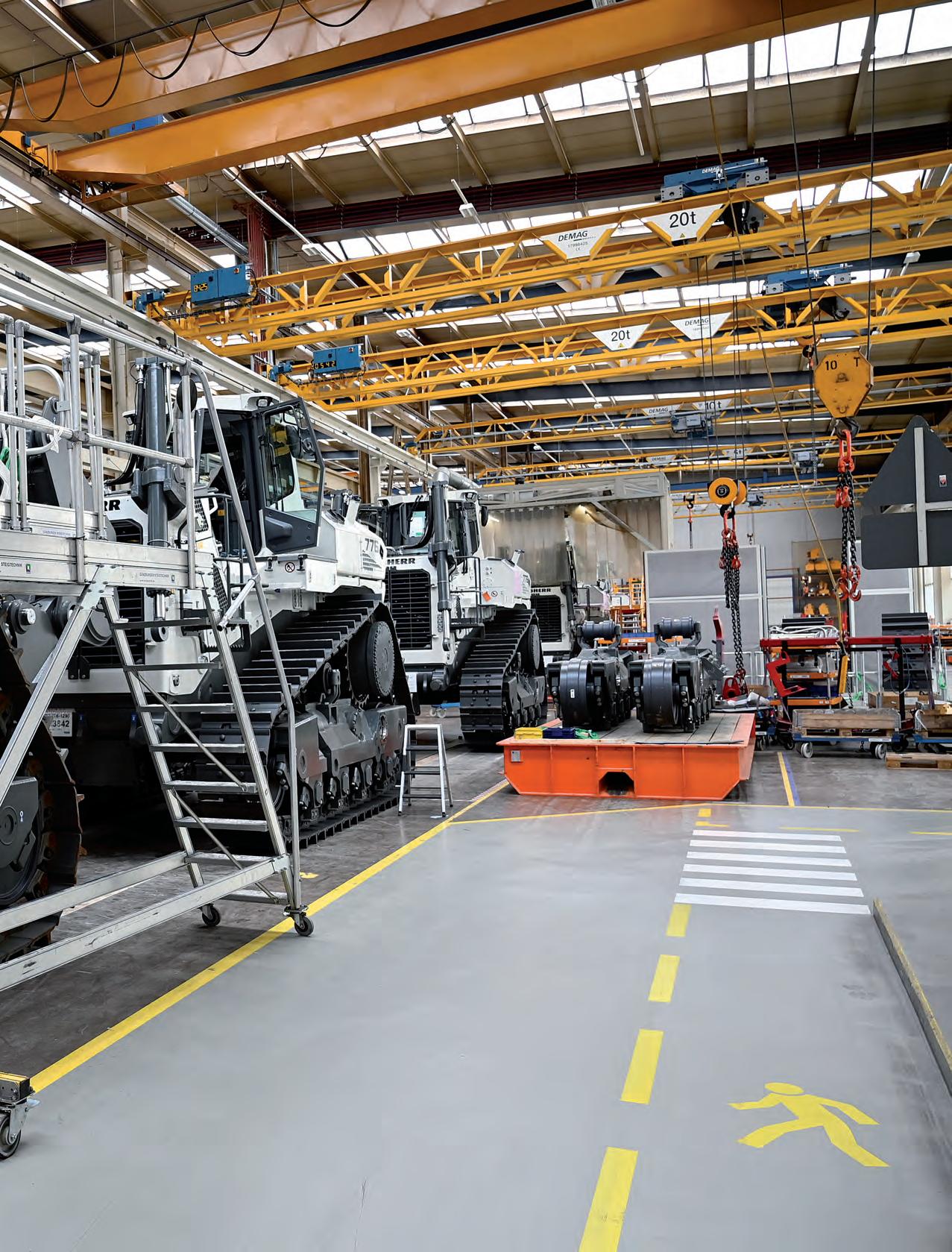 16 | Liebherr | Stahlkolosse am laufenden Band: Als Produktionsstandort für Baumaschinen mit hydrostatischem Antrieb ist das Liebherr-Werk in Telfs auf die Fertigung von Planier- und Laderaupen sowie Teleskoplader und Rohrleger spezialisiert. Geschäftsführer Alfred Weithaler zeigte gegenüber dem bauMAGAZIN auf, dass der Neubau, der künftig Platz für 16 200 Paletten sowie 41 000 Kleinteile bietet, »nur der Anfang« sei. »Das erklärte Ziel ist es, bis 2026 über 3 000 Maschinen pro Jahr zu fertigen und genau dann eine Maschine zu liefern, wenn sie bestellt wurde.«