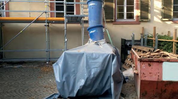 Ich bin: eine wasser- und staubdichte Containerplane mit Einfüllstutzen für Schüttgrutschen (frei konfektio nierbar aus PVC, 630g/m) und gut gegen: groben wie feinen Dreck beim Befüllen von Stand containern auf Baustellen z.B. beim Entkernen