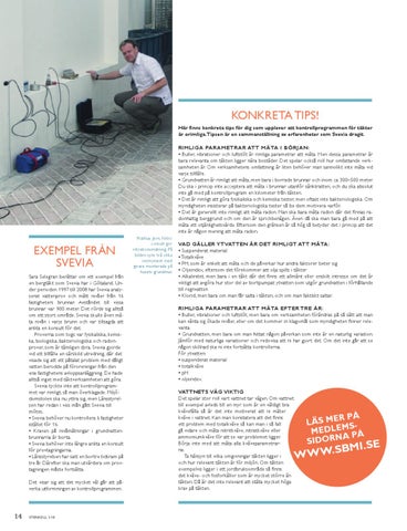 Konkreta tips! Här finns konkreta tips för dig som upplever att kontrollprogrammen för täkter är orimliga.Tipsen är en sammanställning av erfarenheter som Svevia dragit. Rimliga parametrar att mäta i början: • Buller, vibrationer och luftstöt är rimliga parametrar att mäta. Men dessa parametrar är bara relevanta om täkten ligger nära bostäder. Det spelar också roll hur omfattande verksamheten är. Om verksamhetens omfattning är liten behöver man sannolikt inte mäta vid varje tillfälle. • Grundvatten är rimligt att mäta, men bara i borrade brunnar och inom ca 300–500 meter. Du ska i princip inte acceptera att mäta i brunnar utanför sänktratten, och du ska absolut inte gå med på kontrollprogram en kilometer från täkten. • Det är rimligt att göra fysikaliska och kemiska tester, men oftast inte bakteriologiska. Om myndigheten insisterar på bakteriologiska tester så be dem motivera varför. • Det är generellt inte rimligt att mäta radon. Man ska bara mäta radon där det finnas radonhaltig berggrund och om den är sprickbenägen. Även då ska man bara gå med på att mäta ett otjänlighetsvärde. Eftersom den gränsen är så hög så betyder det i princip att det inte är någon mening att mäta radon.