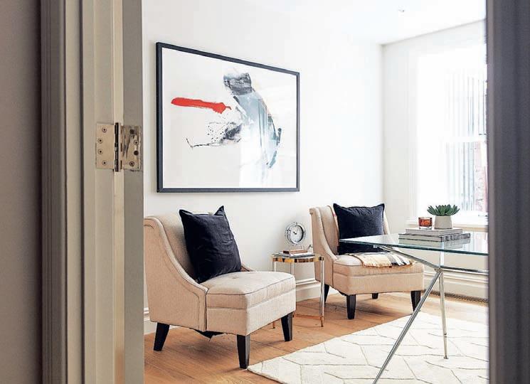 Artwork with prominent black accents is paired with black toss pillows to add hints of strong color in this home office space. Cathy Hobbs Tribune News Service
