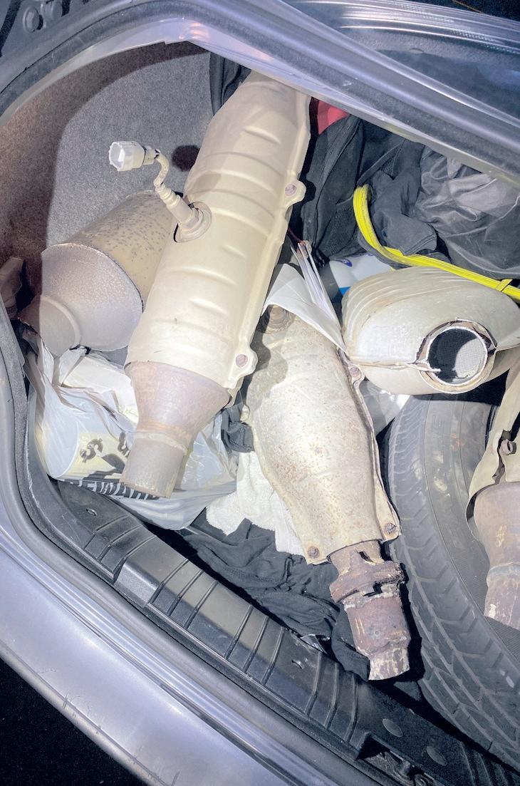 During the traffic stop, deputies found a total of six stolen catalytic converters in the vehicle along with a car jack and several electric saws.