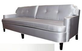 The sofas and armchairs have been designed based on images of original 1940s pieces of furniture; these again combined a fluid relationship between straight and curved lines Deep buttoning was extremely popular, we used this technique in the master bedroom storage benches and headboards