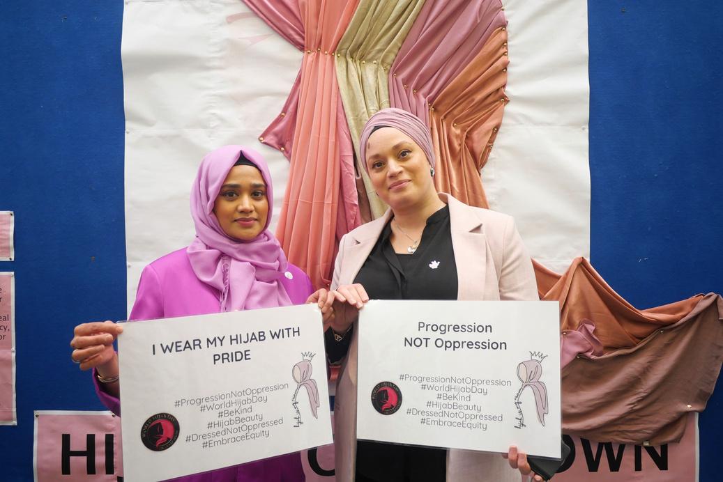 We celebrated another brilliant World Hijab Day this year with the theme of ‘Progression Not Oppression.’ This year, students in Year 10 and Year 11 led assemblies sharing their personal stories and presented and shared their hijab wearing role models. Ms Sahebdin also launched the art and poetry competition with students having the opportunity to win an array of fantastic books written by diverse authors. Ms Harvey and Ms Sahebdin designed the beautiful piazza display highlighting hijab wearing women across the globe who can isnpire us all.