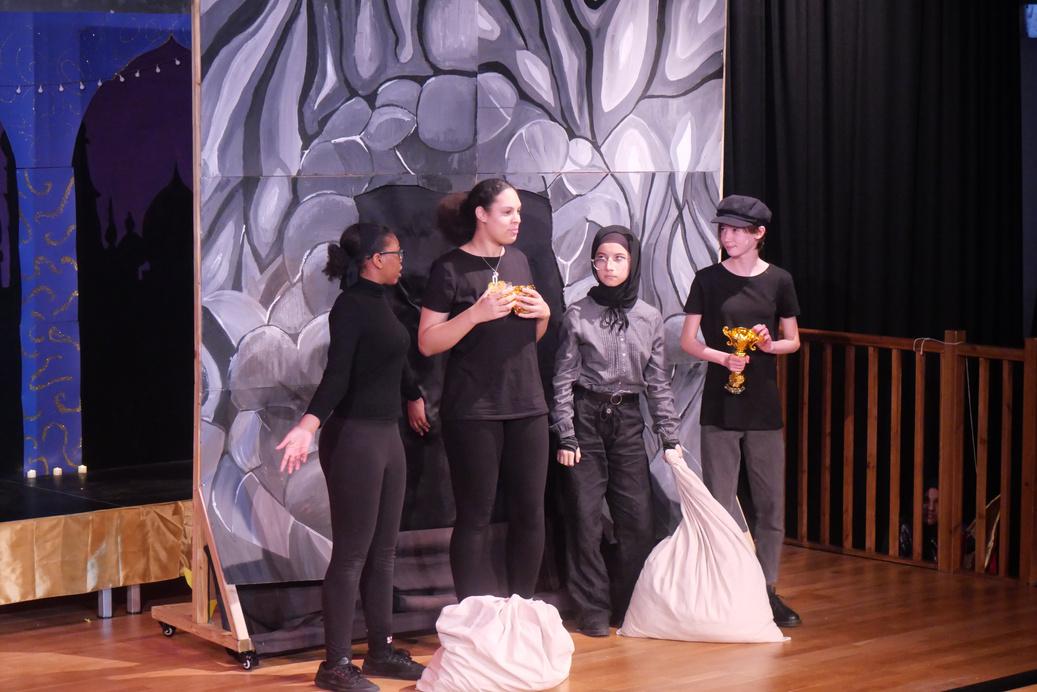 Throughout the Autumn Term, a large group performers and designers from a range of y groups collaborated really effectively to crea school production: Tales From the Middle E production involved a range of impressive performances exploring the stories of Ali Ba the Forty Thieves, Sindbad the Sailor, and A and were weaved together by the framing narrative of a classroom scenario Not only did all members o the cast and crew work incredibly hard to put together the production, but they also shared a performance with the Year 7 students, who have been inspired to write wonderful theatrical reviews o the play they saw. We are incredibly proud of all of the students who participated, the members of staff who worked really hard to support, and, importantly, all audience members who supported the school community.