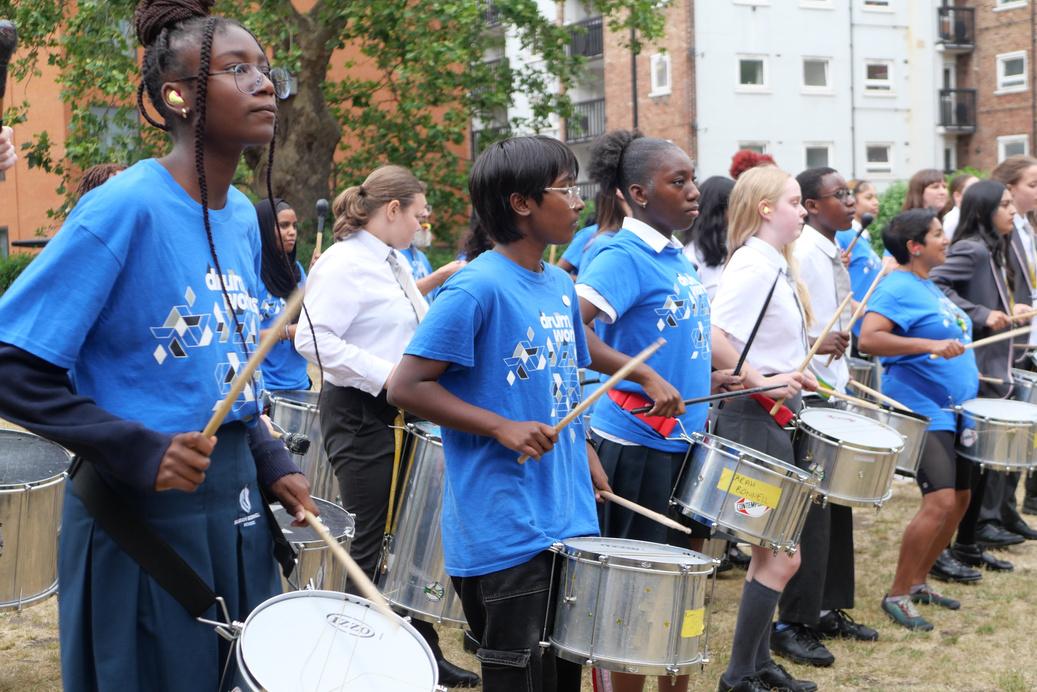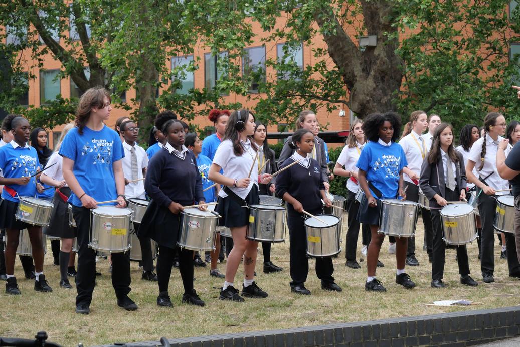 Drum Works have provided workshops and an enrichment club every Friday, at which students from all Year groups and levels can take part This culminated in a fantastic combined school workshop this term, with 9 Drum Works tutors leading Sarah Bonnell and St Paul’s Way Trust students in a 3 hour workshop followed by an incredible performance on the Green for students and teachers to enjoy The level of performance was outstanding and a real inspiration for everyone! We look forward to continuing our work with Drum Works next year!