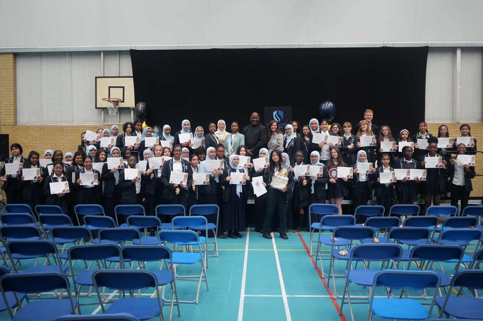 The Sister Achievement Assemblies brought the school together to celebrate students’ achievements and award prizes for each curriculum area and the school values. The special Sarah Bonnell Whole School Awards were presented by Ms Potter, Headteacher, as follows