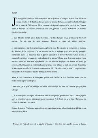 Salut! e m’appelle Pénélope. J’ai trente-trois ans et je viens d’Ithaque. Je suis fille d’Icarios,