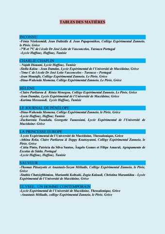 HÉLÈNE -Claire Parliarou & Rénia Menegou, Collège Expérimental Zanneio, Le Pirée, Grèce -Jean Damdas, Lycée Expérimental de l’Université de Macédoine, Grèce -Karima Messaoudi, Lycée Haffouz, Tunisie