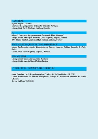 HANNIBAL -Lycée Haffouz, Tunisia -Mariana L. Agrupamento de Escolas de Sátão, Portugal -Asma Abidi, Lycée Haffouz, Haffouz, Tunisia