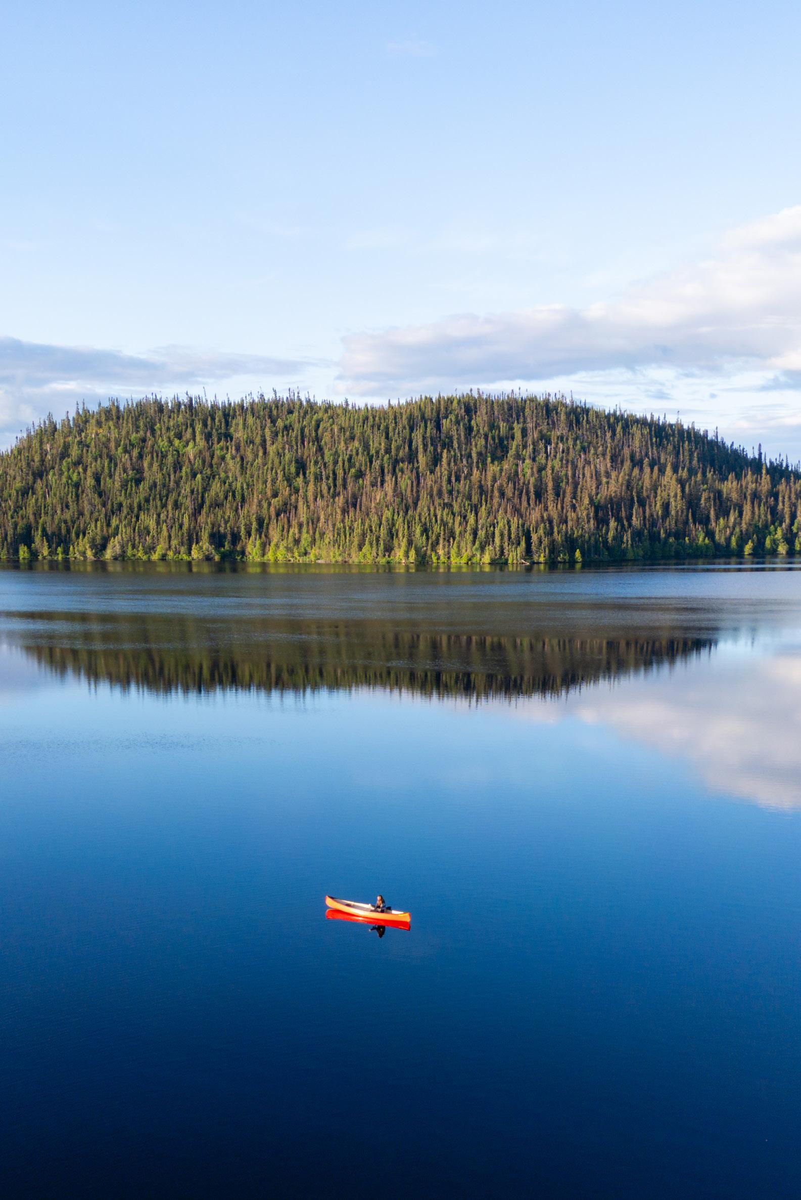 Traveling north, the boreal forest gradually gives way to the taiga, with wetlands, rocky terrain, and silvery lichens covering the ground. This shift highlights the territory’s rich natural diversity.