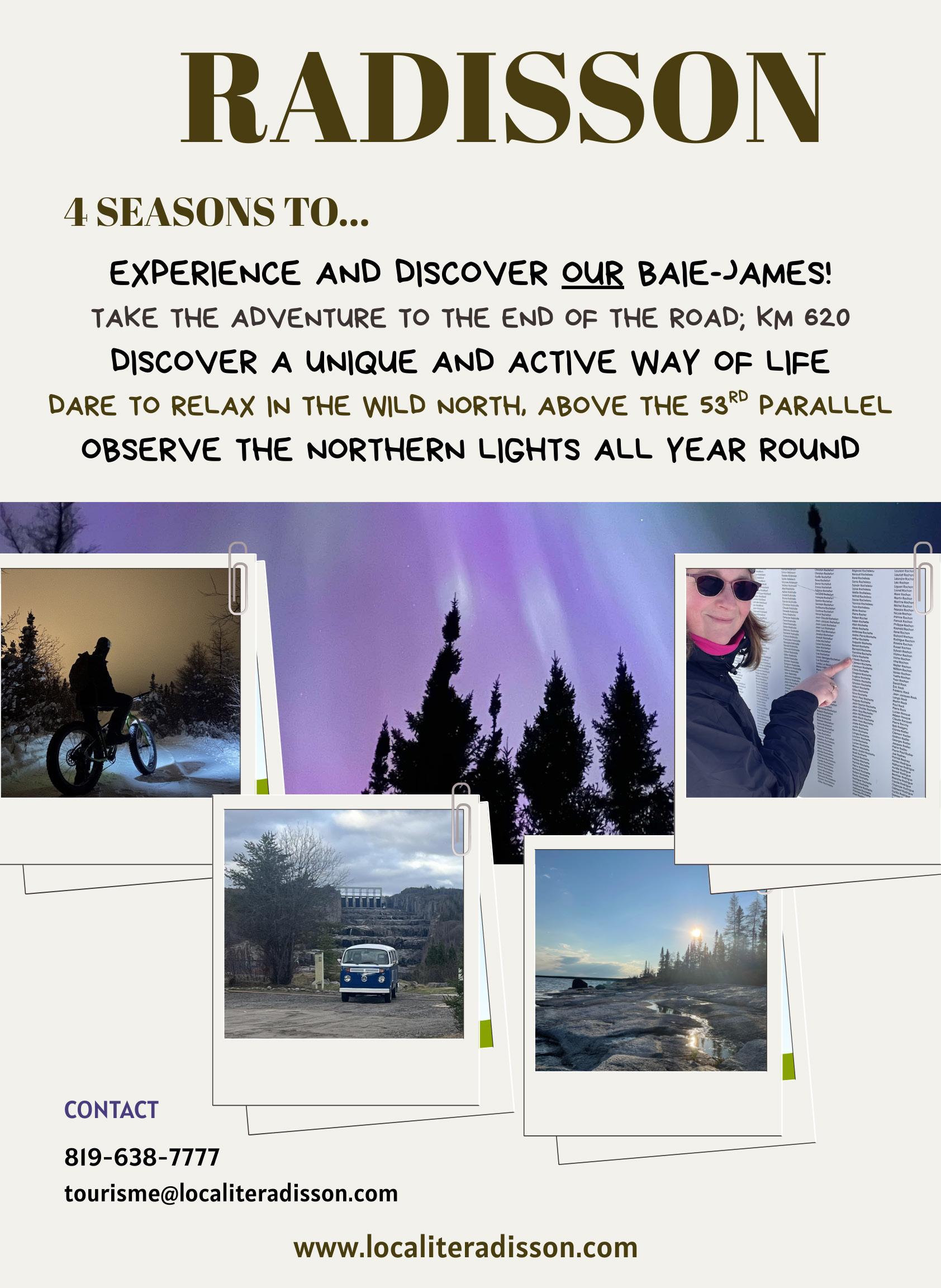 Off season: 819 638-7777, ext. 221 tourisme@localiteradisson.com