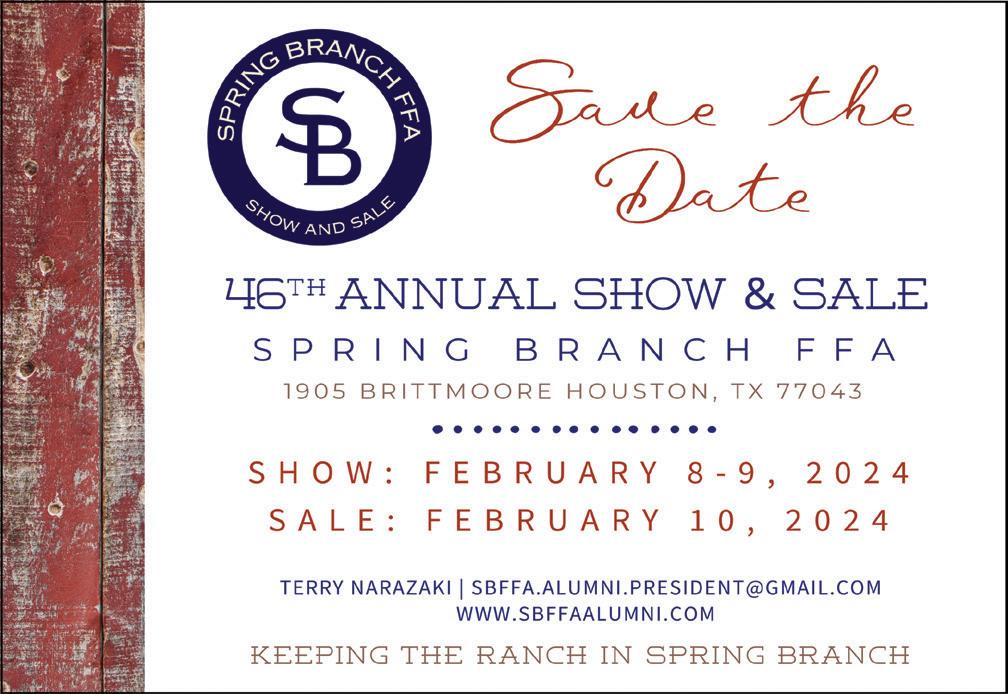 15 Save the date for Spring Branch FFA’s show and sale in the spring