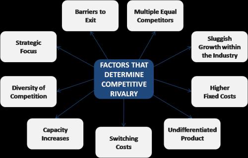 • At the centre of Porter's Five Forces is rivalry between companies. The other forces help to determine the intensity of the competition. These are divided into two "vertical forces" from other levels of the business worldthe bargaining power of suppliers and the bargaining power of buyers -and two horizontal forces from the same level of the business world - the threat of new entrants and the threat of substitute offerings. An industry where the five forces drive down overall profitability would be deemed "unattractive".