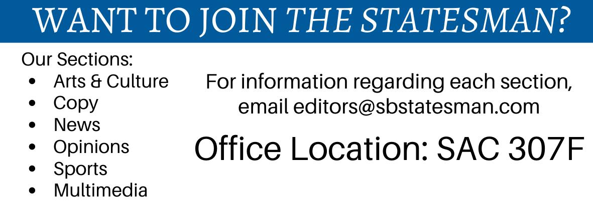 For more Statesman content, visit us at sbstatesman.com and follow us on Twitter and Instagram @sbstatesman.
