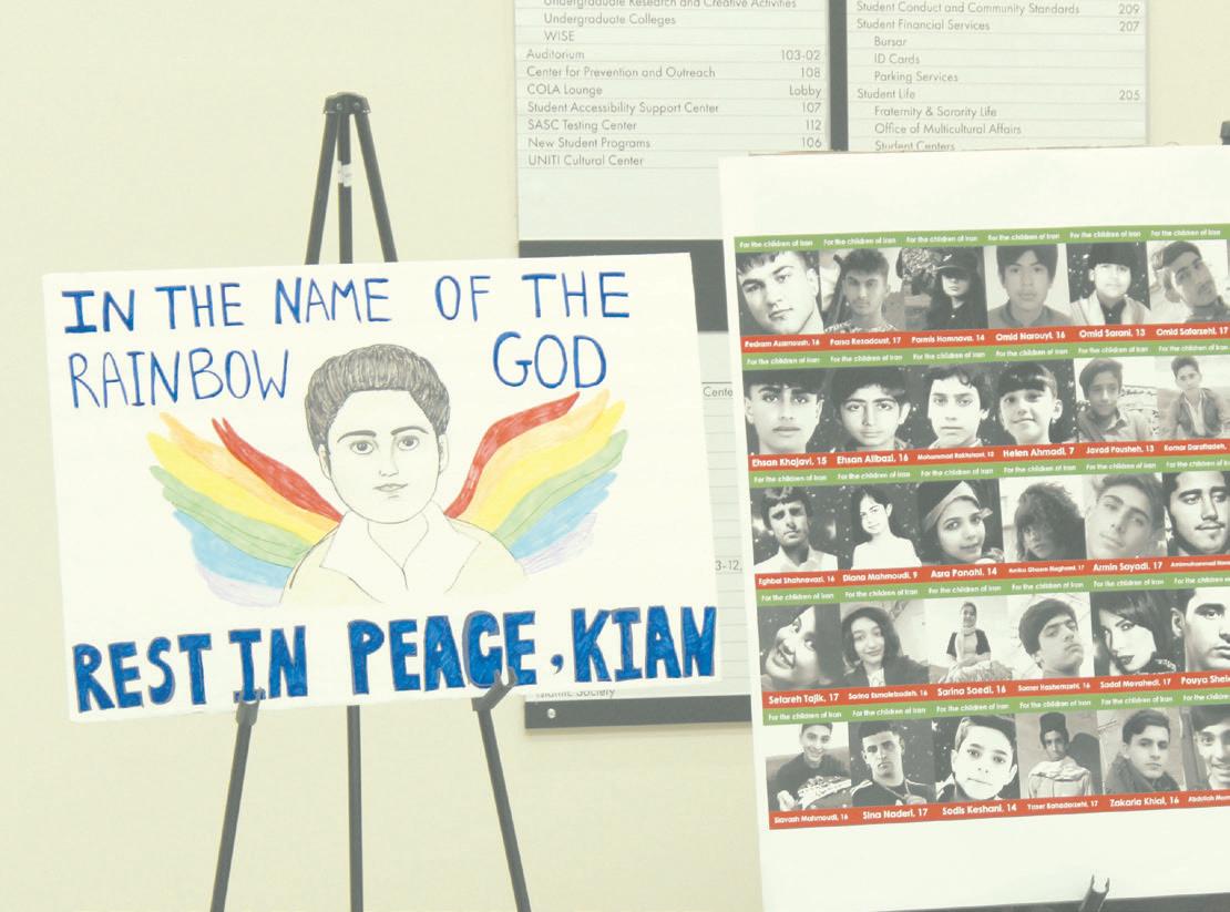 Members of the Iranian Graduate Student Association informed audiences of the killing of innocent Iranians, while also playing videos that displayed the international protests in solidarity.