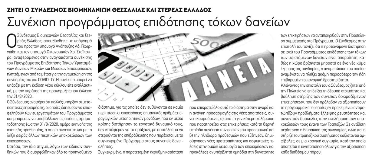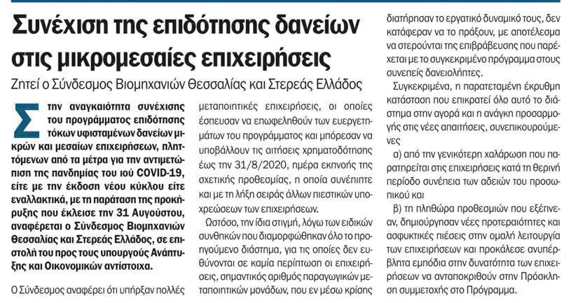 ΕΝΙΣΧΥΣΗ ΠΟΛΥ ΜΙΚΡΩΝ ΚΑΙ ΜΙΚΡΩΝ ΕΠΙΧΕΙΡΗΣΕΩΝ ΠΟΥ ΕΠΛΗΓΗΣΑΝ ΑΠΟ ΤΟΝ COVID-19 ΣΤΗ ΘΕΣΣΑΛΙΑ - ΑΝΑΣΑ