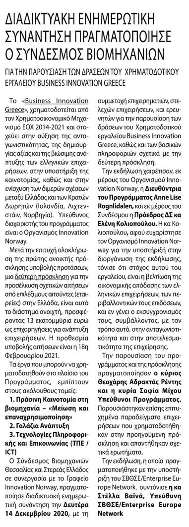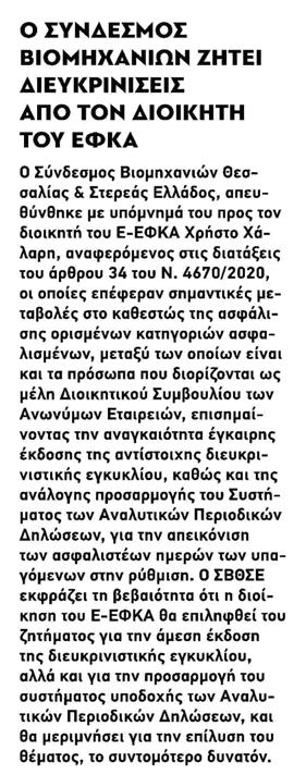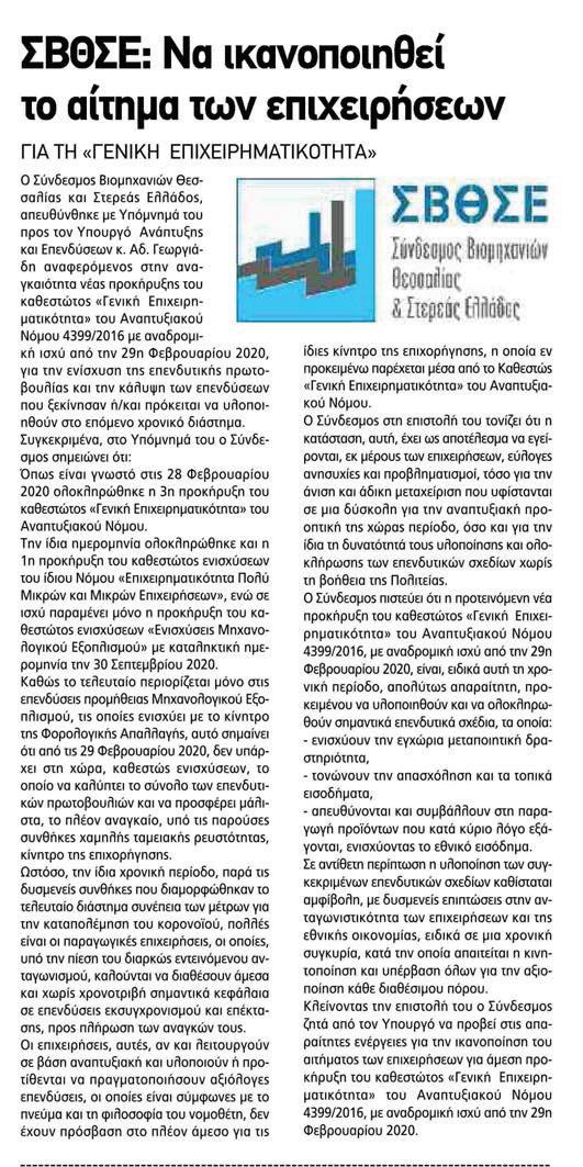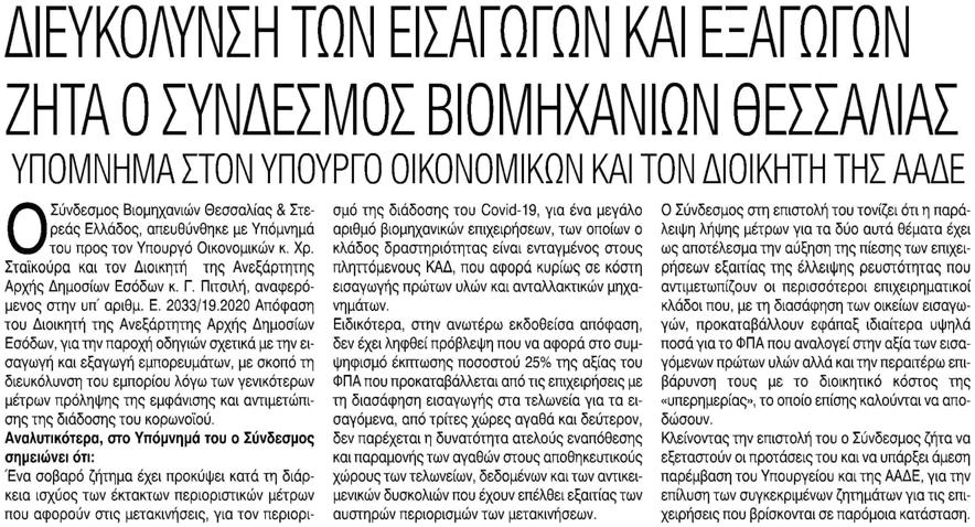 ΒΙΟΜΗΧΑΝΙΩΝ ΘΕΣΣΑΛΙΑΣ & ΣΤΕΡΕΑΣ ΕΛΛΑΔΟΣ