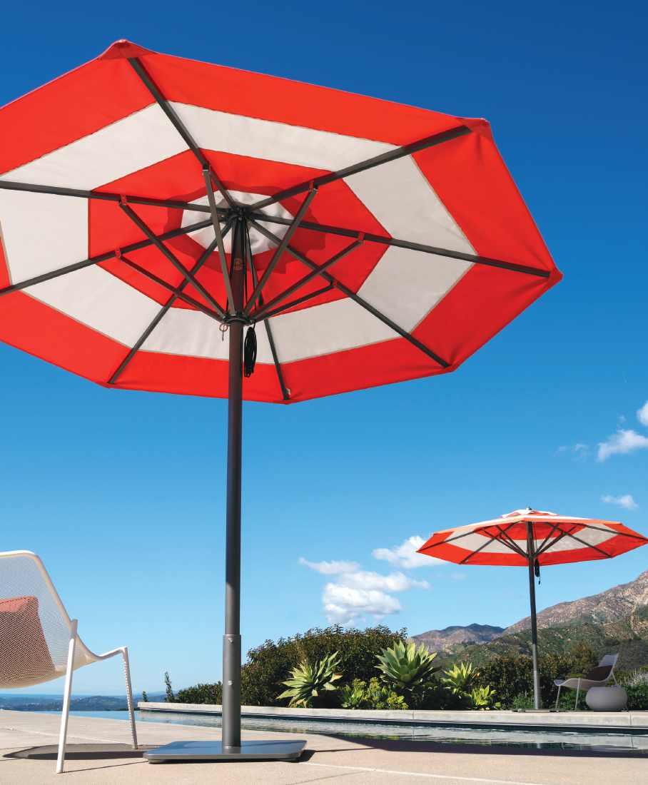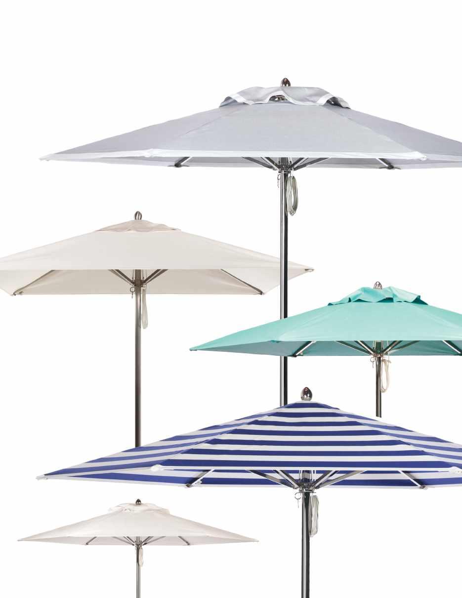 With extensive combinations of shapes, sizes, materials and custom design options, each one-ofa-kind umbrella continues our tradition of expertly designed, precision-engineered outdoor umbrellas that exceed expectations for years to come.