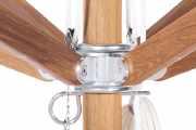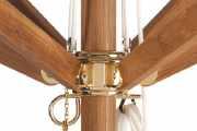 We use only the finest components: marine-grade ball bearing pulleys, high-performance nylon cord, and brass or stainless steel fittings built to last decades. The result is operation so smooth and reliable that opening your umbrella becomes a pleasure rather than a chore.